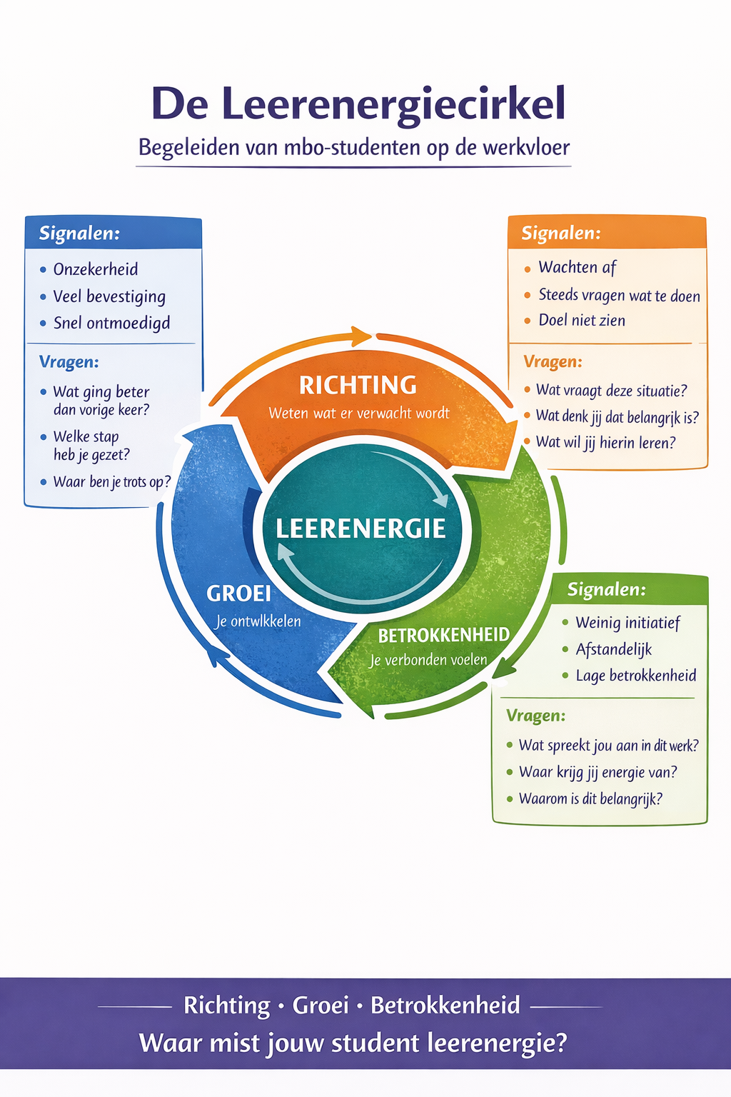 Daarnaast bevat de toolbox visuele modellen die helpen om leerenergie en begeleidingsprocessen inzichtelijk te maken.